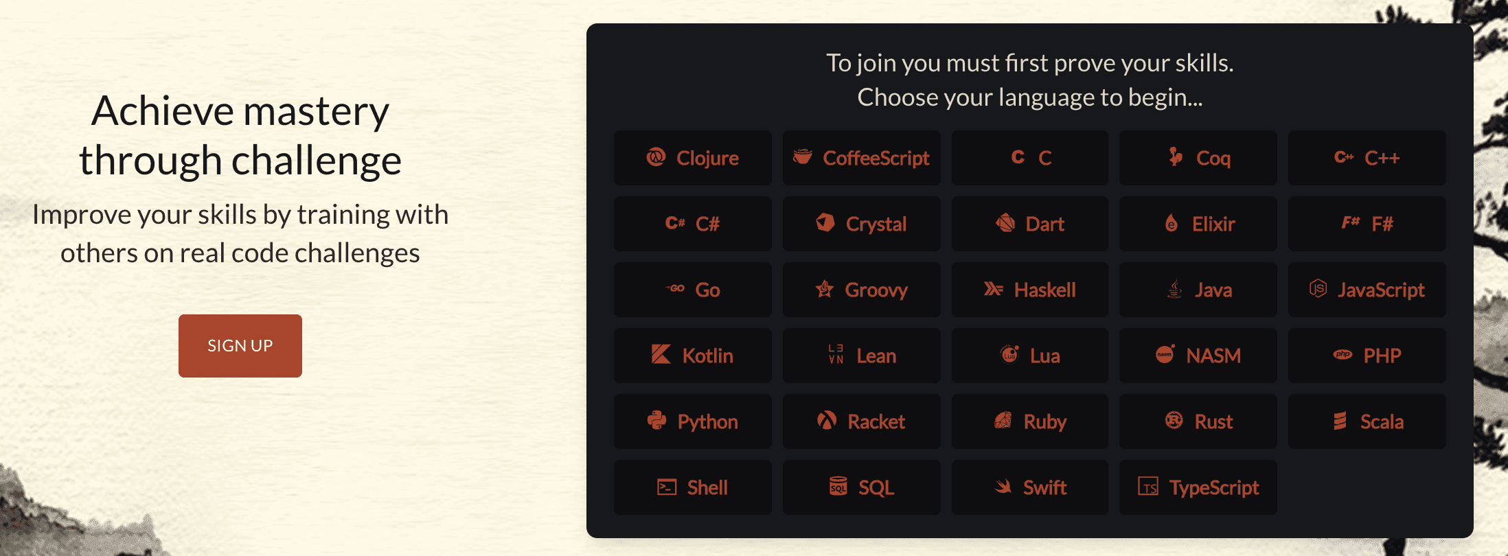 Здесь можно прокачать свои навыки в алгоритмах, математике, SQL, функциональном программировании, AI и других направлениях.